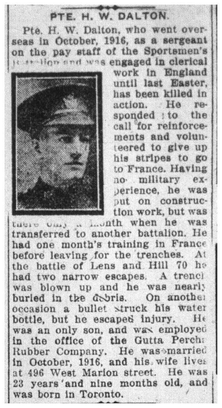Galerie numérique de Soldat Harold Woodsworth Dalton