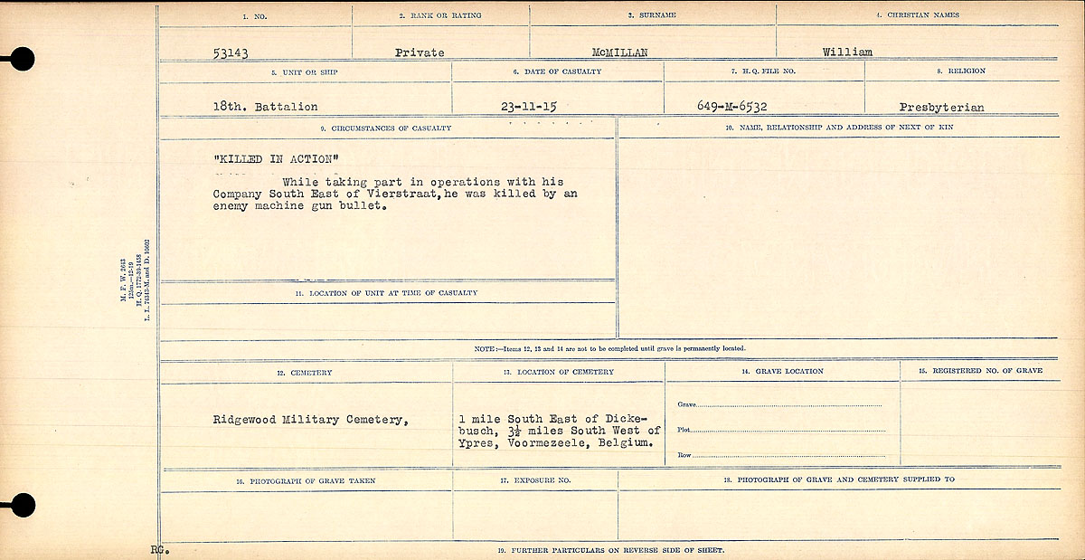 Galerie numérique de Soldat William McMillan