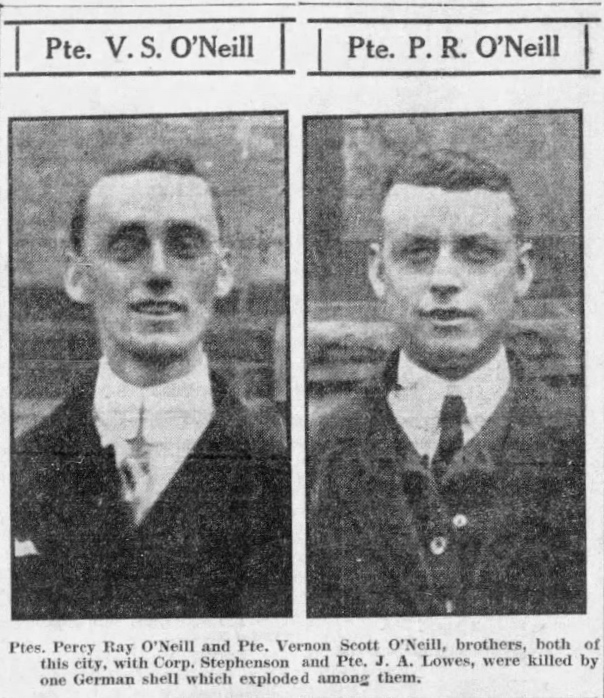 Frére de Lizzie O'Neill de Vancouver, Columbia Britanique, frère d'Eveline Scott de Hamilton, Ontario et frére du soldat Verner Scott O'Neill, décédé au service du Canadian Infantry (Central Ontario Regiment).