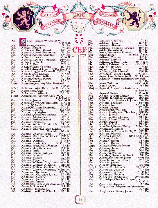 Page 45 du Livre du Souvenir de la Première Guerre mondiale.