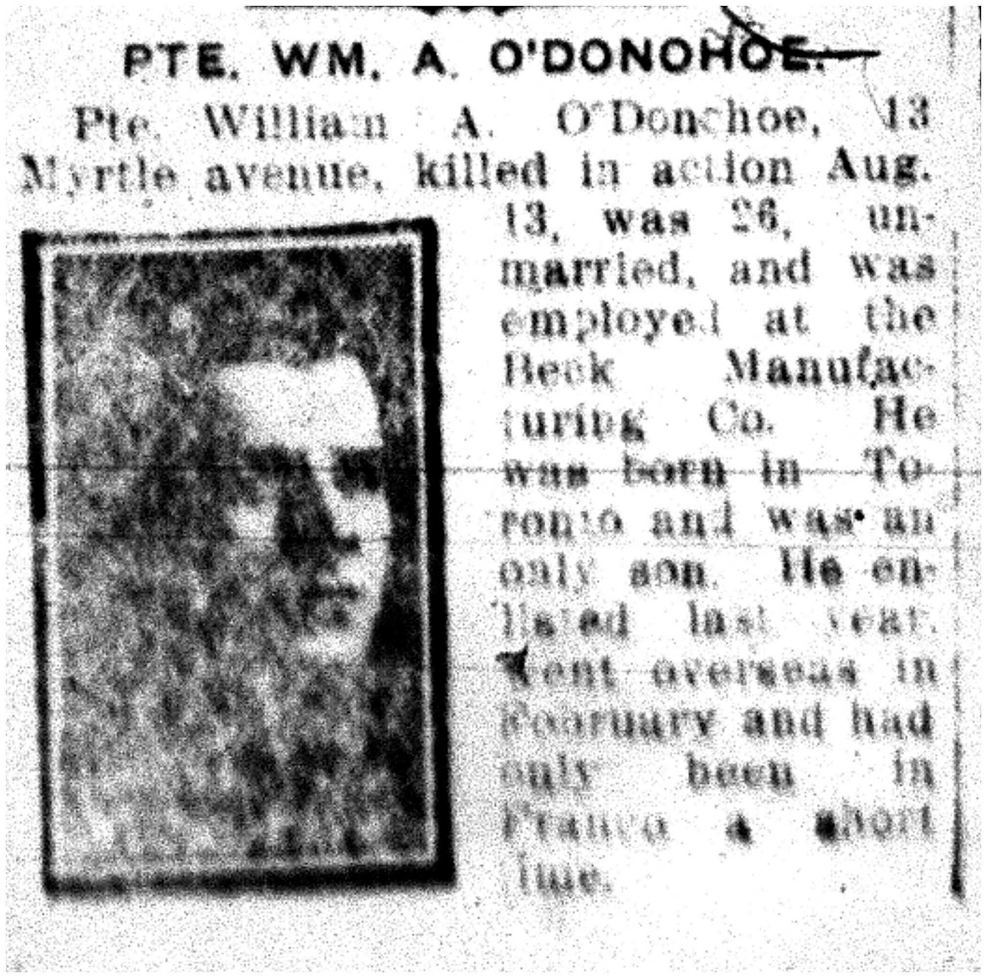Fils de James O'Donohoe, de 268, Greenwood Avenue, Toronto.