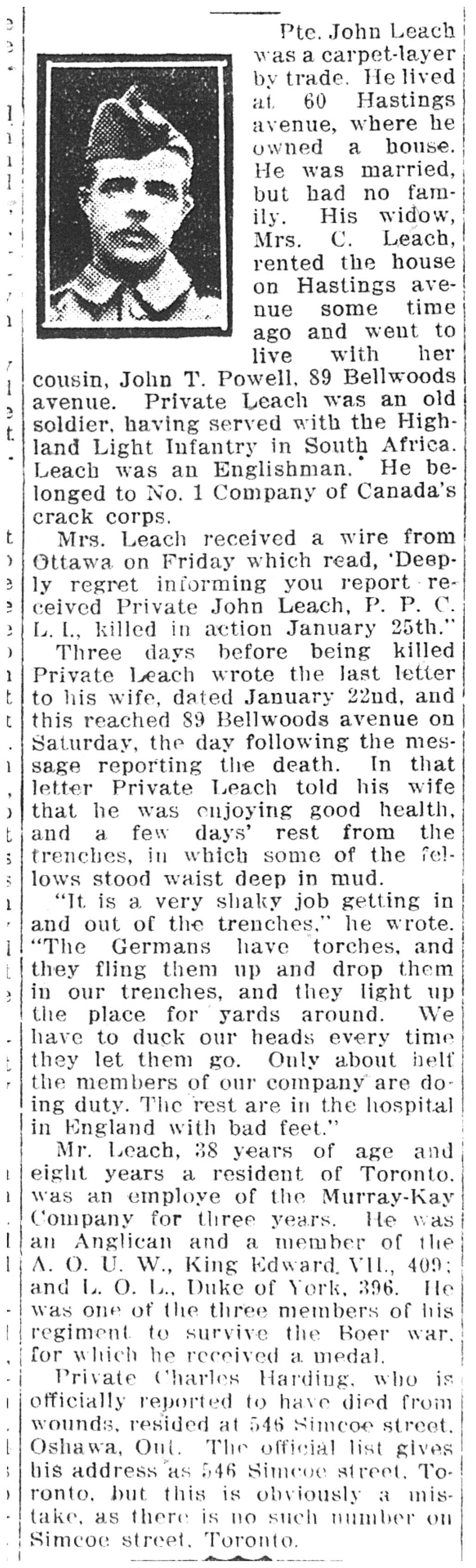 Époux de Clara Eluard (était Leach), de Toronto. A servi au cours de la campagne de l'Afrique du sud avec Highland Light Inf. Originaire de Angleterre.