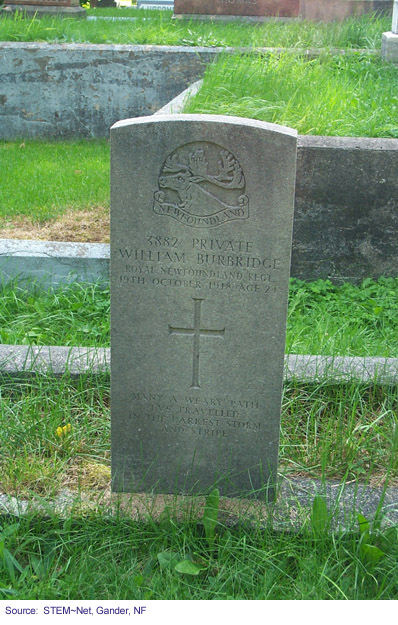 Fils de George et Charlotte Burbridge, de Epworth, Burin, Terre-Neuve.