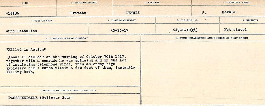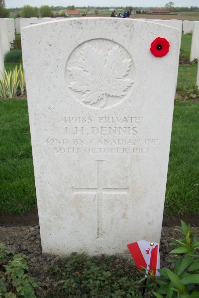 Des fusiliers de Northumberland ont donné le nom de « Tyne Cottages » ou « Tyne Cotts » à un groupe de blockhaus allemands ou casemates situés près du passage à niveau sur la route reliant Passchendaele à Broodseinde. Trois de ces fortins existent toujours dans le cimetière. Le plus gros, qui avait été pris par la troisième division australienne le 4 octobre 1917, a été choisi par le roi George V durant son pèlerinage aux cimetières du front ouest en Belgique et en France en 1922 pour y ériger la Croix du Sacrifice.