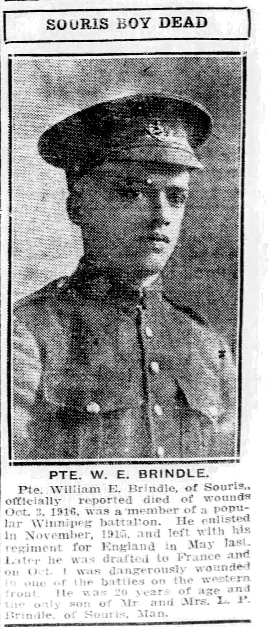 Fils de Lionel P. et Elizabeth A. Brindle, de Souris, Manitoba.