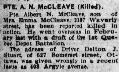 Galerie numérique de Soldat Albert Norman McCleave