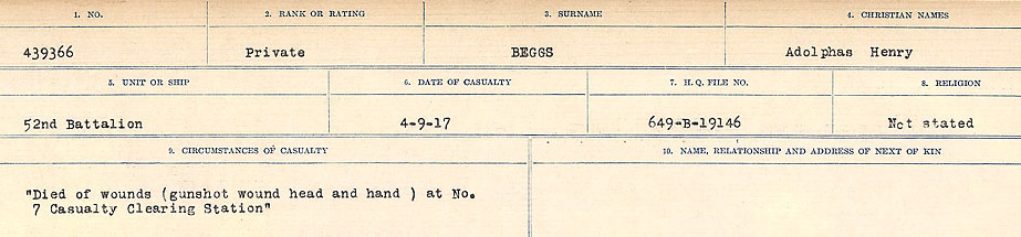Galerie numérique de Soldat Adolphus Henry Beggs