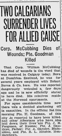 Fils de M. et Mme John McCubbing, de Dumfries, Écosse; époux de Agnes McCubbing, de 1320, 11th Avenue W., Calgary.