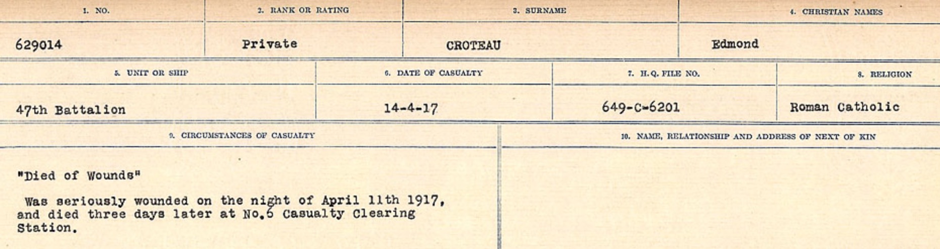 Galerie numérique de Soldat Edmond Croteau