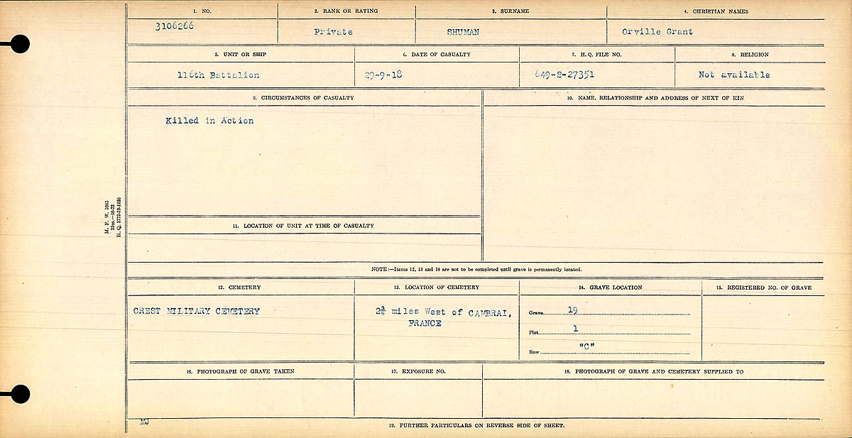 Pour plus d’informations, visitez la Commission des sépultures de guerre du Commonwealth (site disponible en anglais seulement).