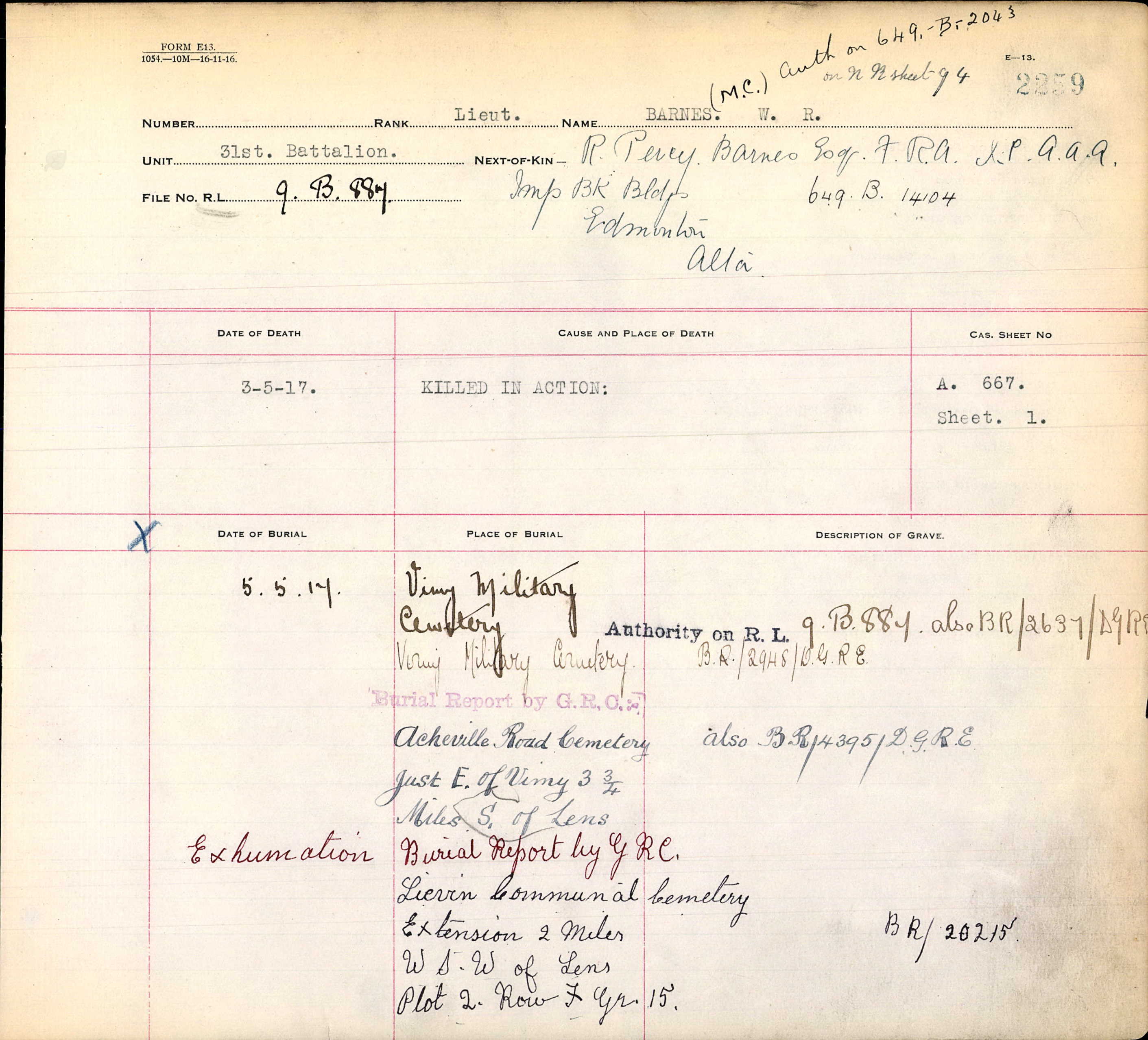 Galerie numérique de Lieutenant Wilfred Robert Barnes