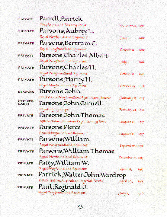 Page 93 du Livre du Souvenir de la Terre-Neuve.