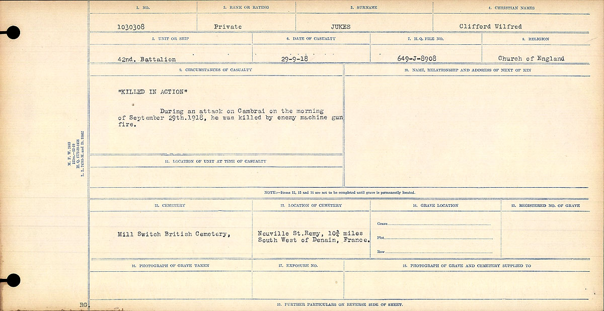 Galerie numérique de Soldat Clifford Wilfred Jukes