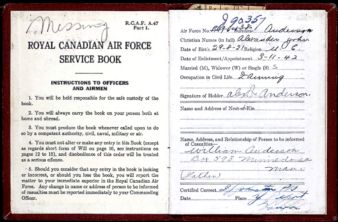 Galerie numérique de Sous-lieutenant d'aviation Alexander John Anderson