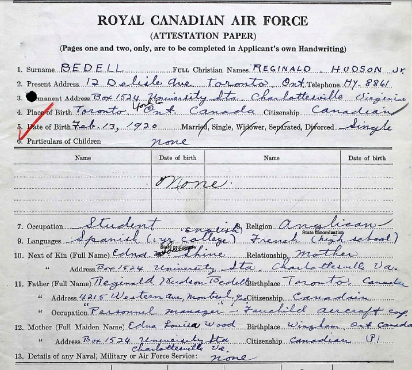 Galerie numérique de Sous-lieutenant d'aviation Reginald Hudson Bedell