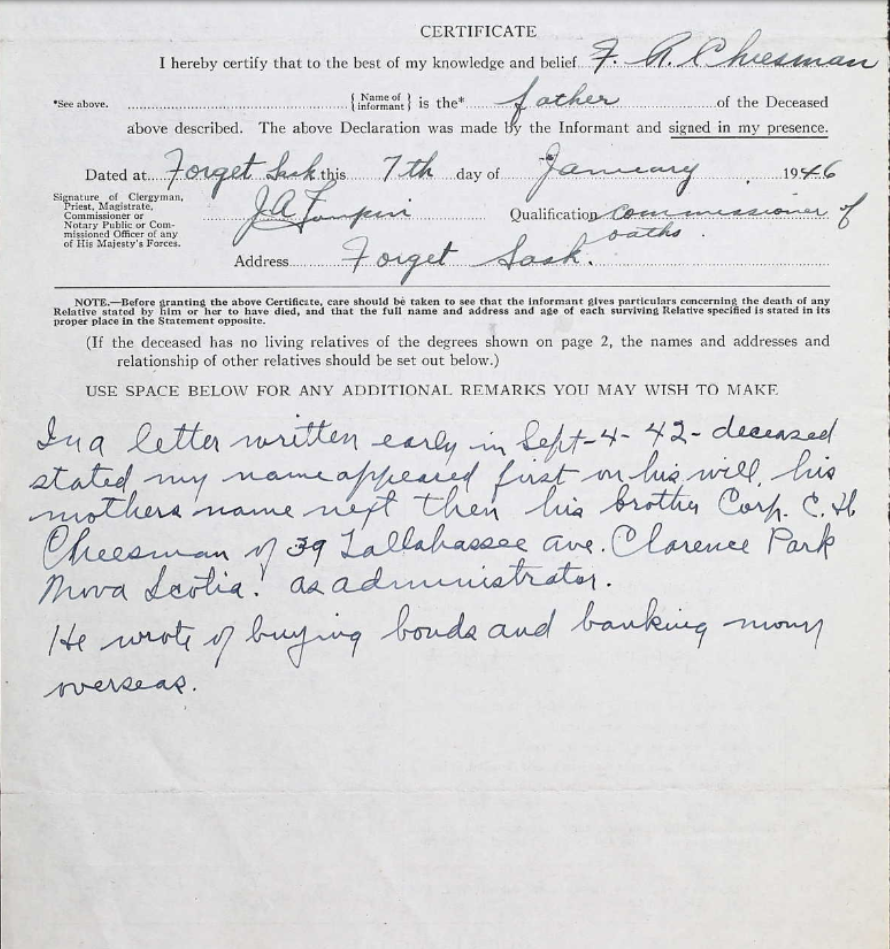 Frère du caporal Claude Durant Cheesman, de la GRC, basé à Shubenacadie, Nouvelle-Écosse.