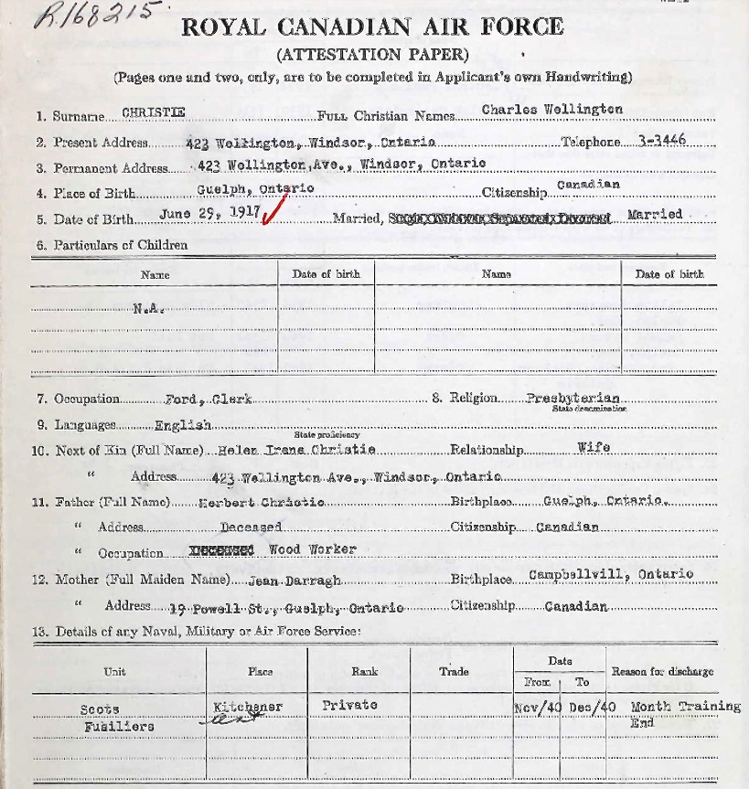 Galerie numérique de Flight Sergeant Charles Wellington Christie