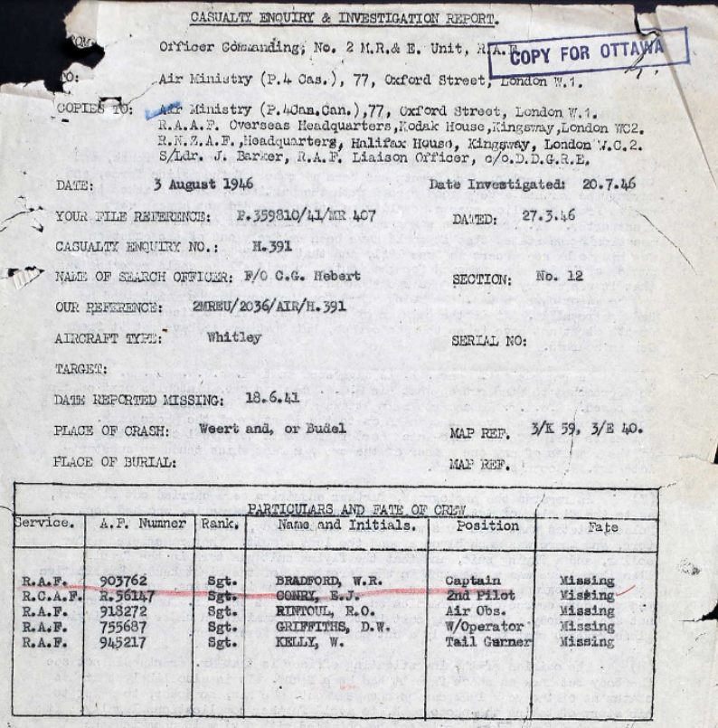 Au cours de la Seconde Guerre mondiale, plus de cent seize mille hommes et femmes des forces aériennes du Commonwealth britannique sont morts au champ d'honneur. Plus de dix-sept mille d'entre eux étaient membres de l'Aviation royale canadienne ou des Canadiens qui servaient dans la Royal Air Force. Presque un tiers des morts n'ont pas de sépulture connue. De ce total, vingt mille quatre cent cinquante sont commémorés par nom au Mémorial de Runnymede situé à Englefield Green, près d'Egham, à trente-deux kilomètres à l'ouest de Londres.
