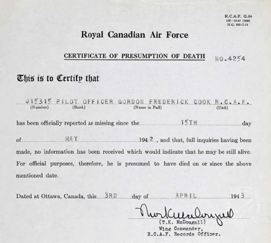 Galerie numérique de Sous-lieutenant d'aviation Gordon Frederick Cook