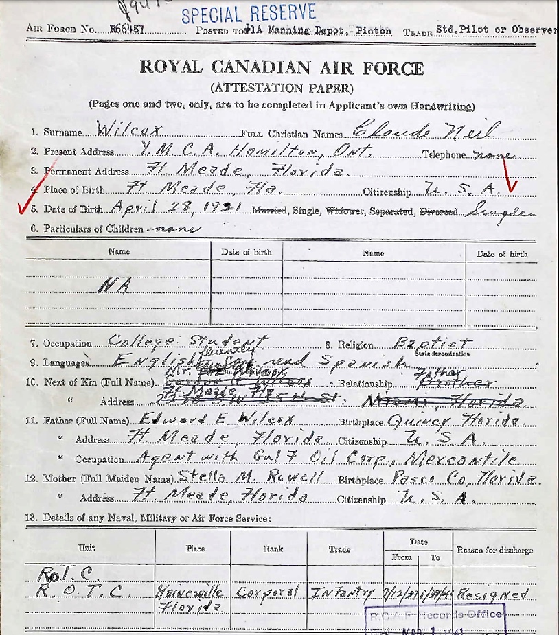 Fils de Edward E. Wilcox et Estella Wilcox, de Fort Meade, Florida, É.-U.