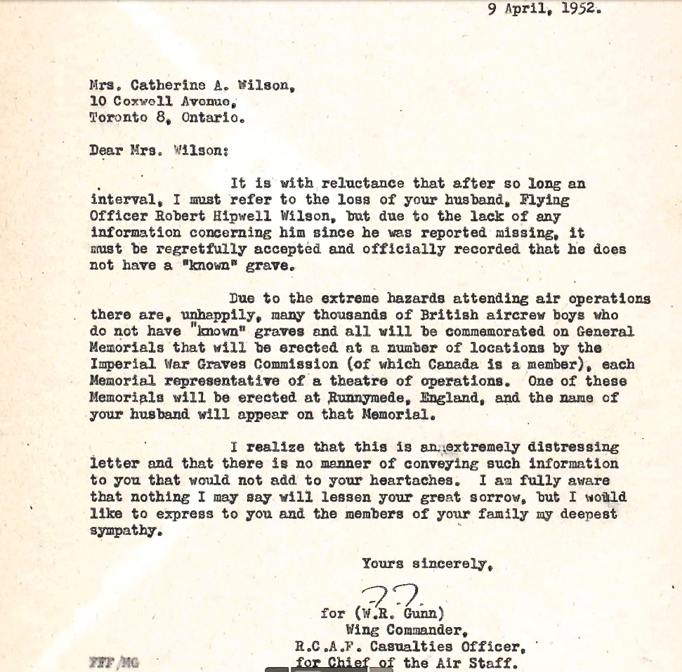 Au cours de la Seconde Guerre mondiale, plus de cent seize mille hommes et femmes des forces aériennes du Commonwealth britannique sont morts au champ d'honneur. Plus de dix-sept mille d'entre eux étaient membres de l'Aviation royale canadienne ou des Canadiens qui servaient dans la Royal Air Force. Presque un tiers des morts n'ont pas de sépulture connue. De ce total, vingt mille quatre cent cinquante sont commémorés par nom au Mémorial de Runnymede situé à Englefield Green, près d'Egham, à trente-deux kilomètres à l'ouest de Londres.