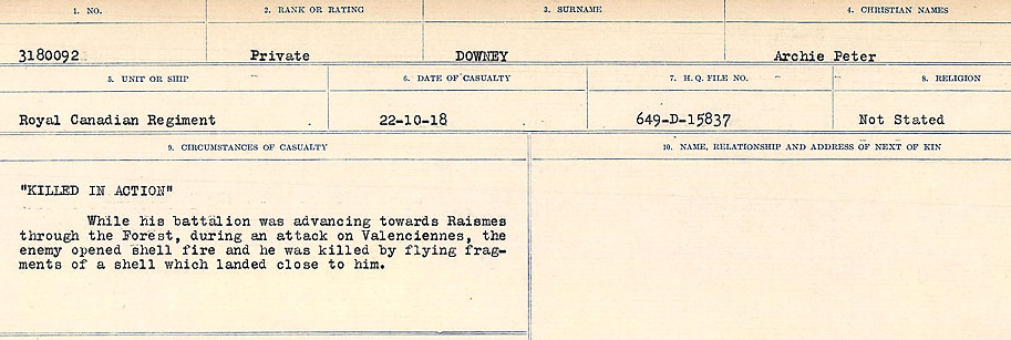 Soldat Archie Peter Downey