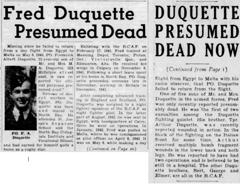 Galerie numérique de Sous-lieutenant d'aviation Frederick Albert Duquette