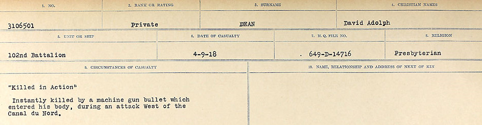 Galerie numérique de Soldat David Adolph Dean