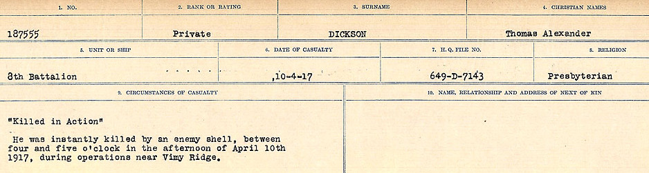 Fils de William et Bella Dickson, de Manitou, Manitoba.