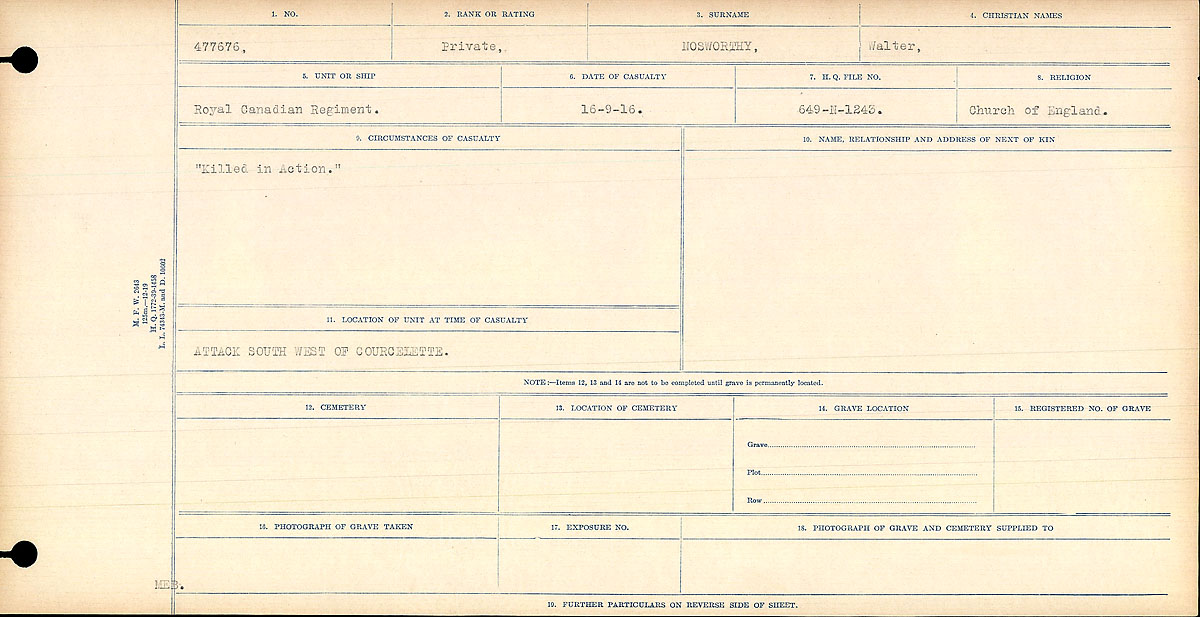 Galerie numérique de Soldat Walter Nosworthy
