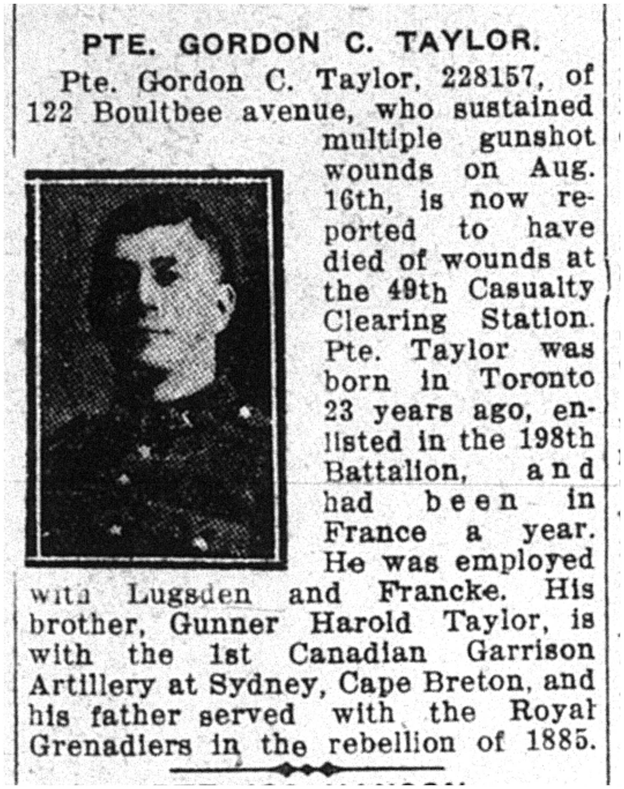 Galerie numérique de Soldat Gordon Campbell Taylor