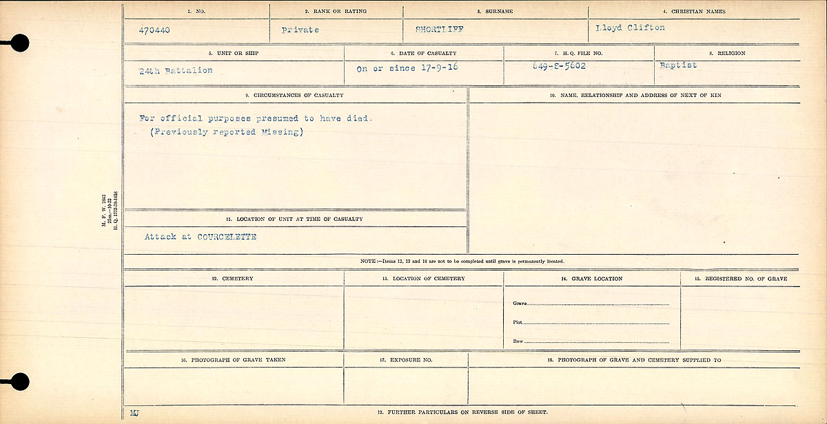 Galerie numérique de Soldat Lloyd Clifton Shortliff
