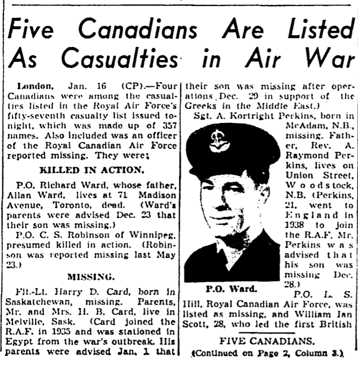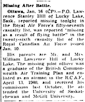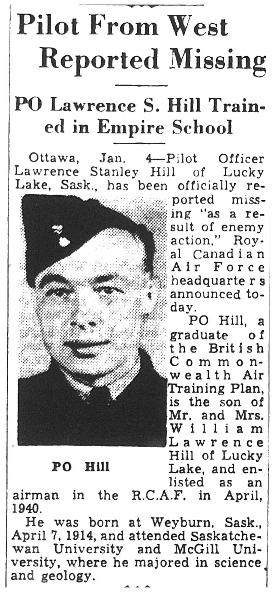 Frère du Lieutenant d'aviation Edward Henry Hill, décédé au service de l'Aviation royale du Canada