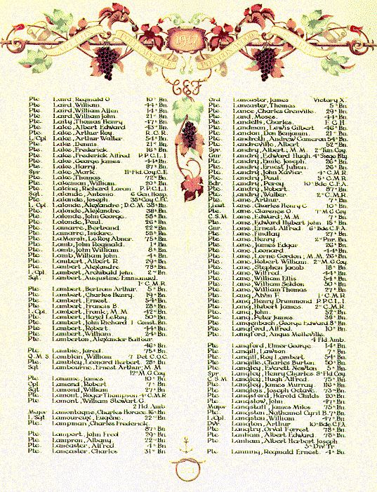 L'hommage le plus impressionnant que le Canada a rendu à ceux de ses citoyens qui ont combattu et donné leur vie au cours de la Première Guerre mondiale, a trouvé son expression concrète dans le Monument Commémoratif du Canada à Vimy, qui surplombe majestueusement la plaine de Douai du sommet de la crête de Vimy, à environ huit kilomètres au nord-est d'Arras. Le Monument représente un hommage à tous ceux qui ont combattu pour leur pays durant ces quatre années de guerre et, en particulier, à ceux qui ont donné leur vie. Sur le socle du Monument, sont gravés dans la pierre, en français et en anglais, les mots suivants :
