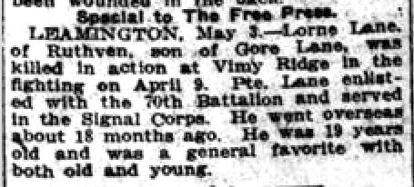 Frère du soldat Wilfred Charles Lane, décédé pendant qu’il servait dans le Corps canadien.