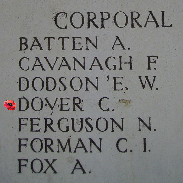 À LA PLUS GRANDE GLOIRE DE DIEU ICI SONT INSCRITS LES NOMS DES SOLDATS QUI SONT TOMBÉS DANS LE SAILLANT D'YPRES, MAIS QUE LES HASARDS DE LA GUERRE ONT EMPÊCHÉS D'AVOIR UNE IDENTITÉ ET UNE SÉPULTURE HONORABLE COMME LEURS CAMARADES DANS LA MORT.