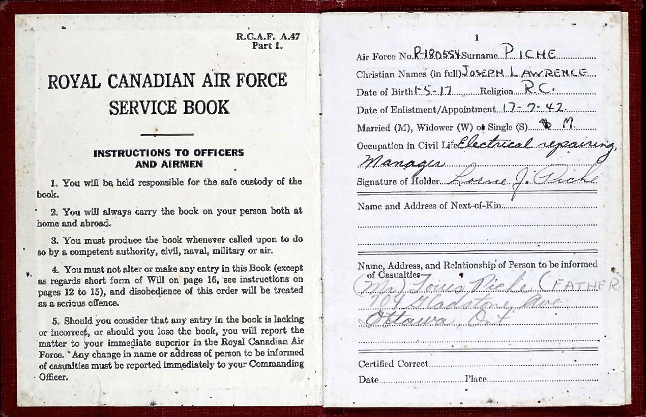 Galerie numérique de Flight Sergeant Lawrence Joseph Piche