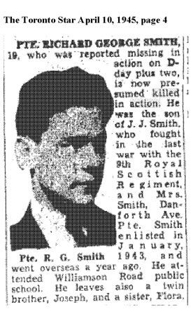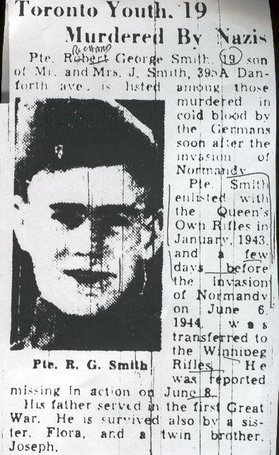 Les Canadiens qui sont morts vers la fin des combats en Normandie sont inhumés au cimetière militaire canadien de Bretteville-sur-Laize. Le cimetière militaire canadien de Bény-sur-Mer compte 2048 sépultures, ainsi qu'un monument spécial érigé à la mémoire d'un soldat du Corps canadien d'infanterie dont on sait qu'il a été inhumé ici, mais dont la tombe n'a jamais pu être trouvée.