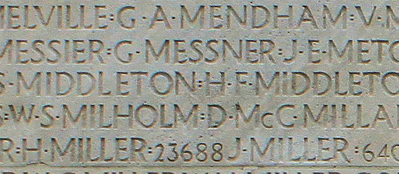 Son nom tel qu'il est inscrit sur le monument commémoratif de Vimy (2010). Plus de 11,000 Canadiens décédés qui n'ont pas de lieu de sépulture connu en France, sont honorés sur ce mémorial. Puissent-ils ne jamais être oubliés. (J. Stephens)