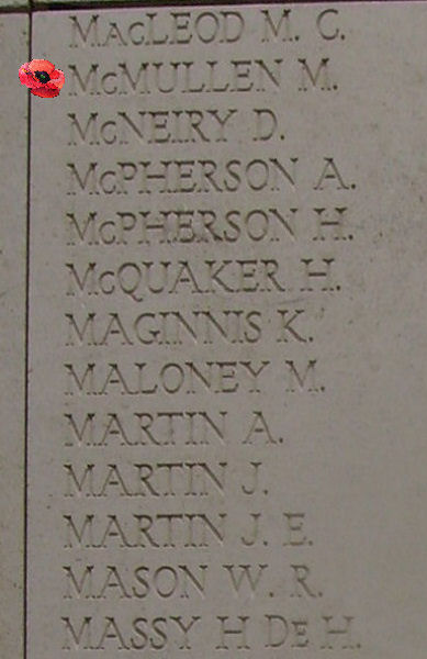 À LA PLUS GRANDE GLOIRE DE DIEU ICI SONT INSCRITS LES NOMS DES SOLDATS QUI SONT TOMBÉS DANS LE SAILLANT D'YPRES, MAIS QUE LES HASARDS DE LA GUERRE ONT EMPÊCHÉS D'AVOIR UNE IDENTITÉ ET UNE SÉPULTURE HONORABLE COMME LEURS CAMARADES DANS LA MORT.