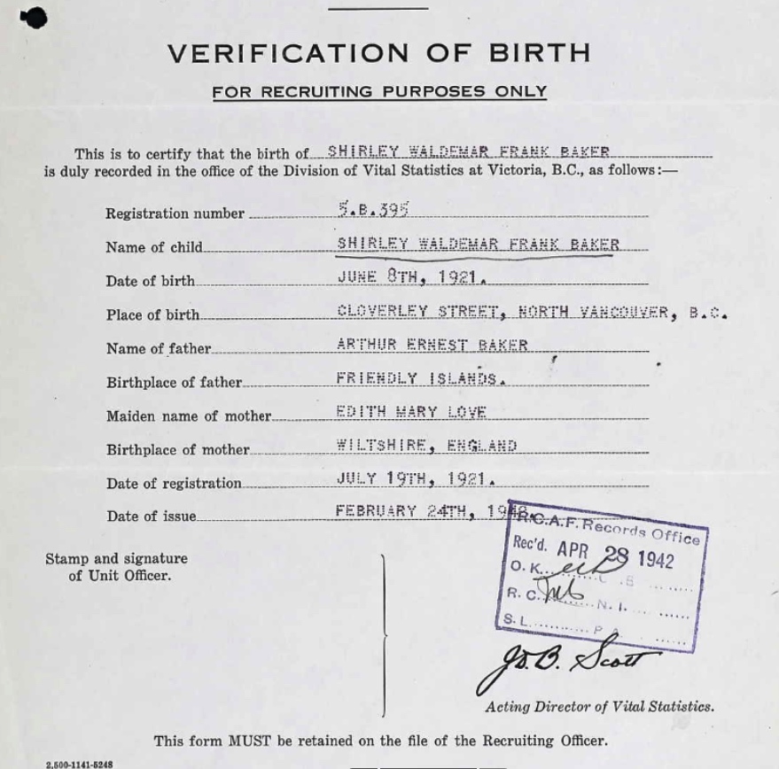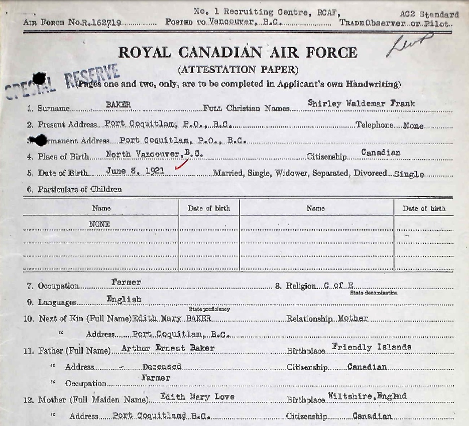 Galerie numérique de Lieutenant d'aviation Shirley Waldemar Frank Baker