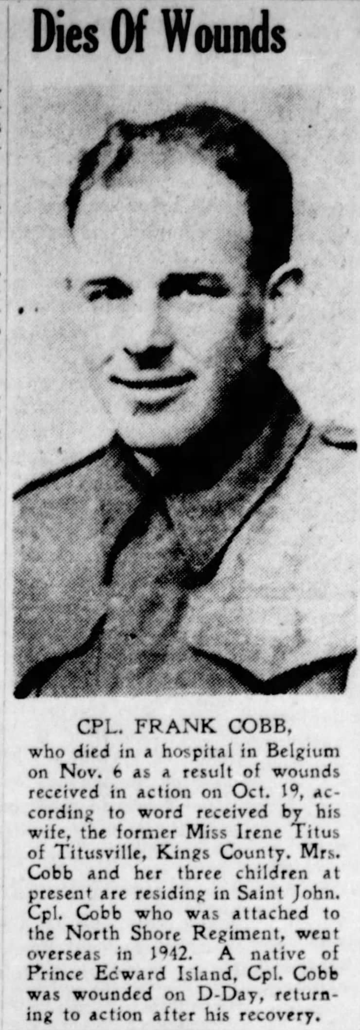 Galerie numérique de Caporal suppléant Frank Howard Cobb