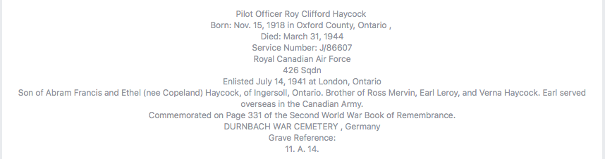 Fils de Abram et Ethel Haycock, de Ingersoll, Ontario, Canada.