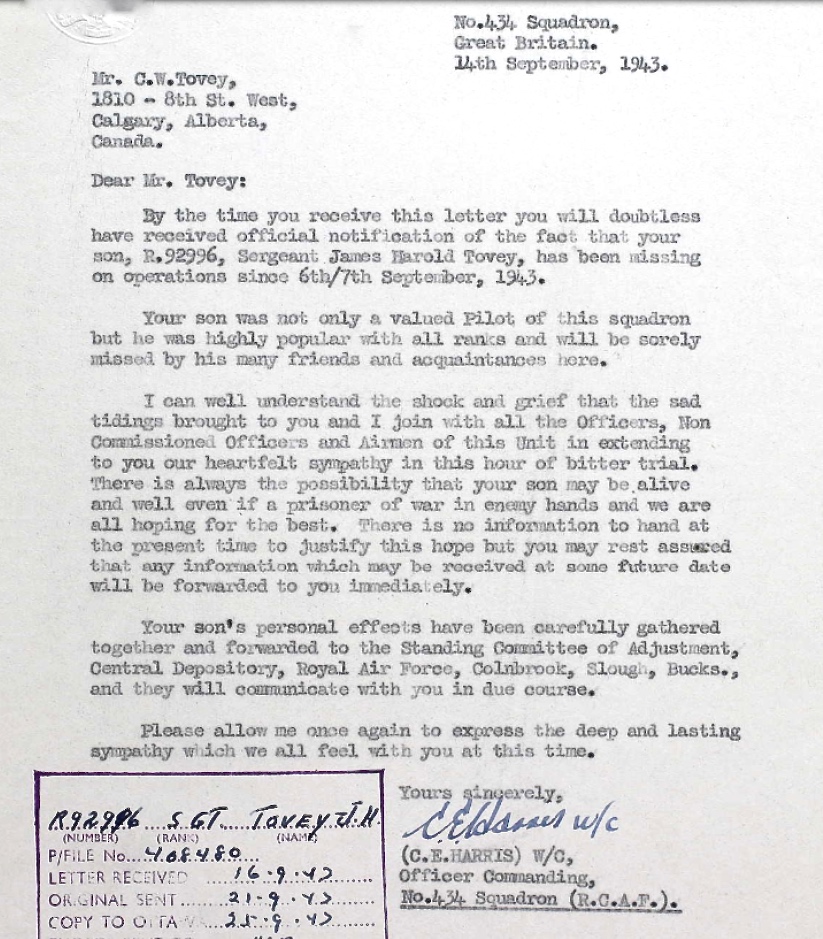 Galerie numérique de Flight Sergeant James Harold Tovey