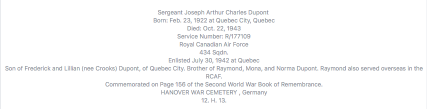Page 156 du Livre du Souvenir de la Seconde Guerre mondiale.