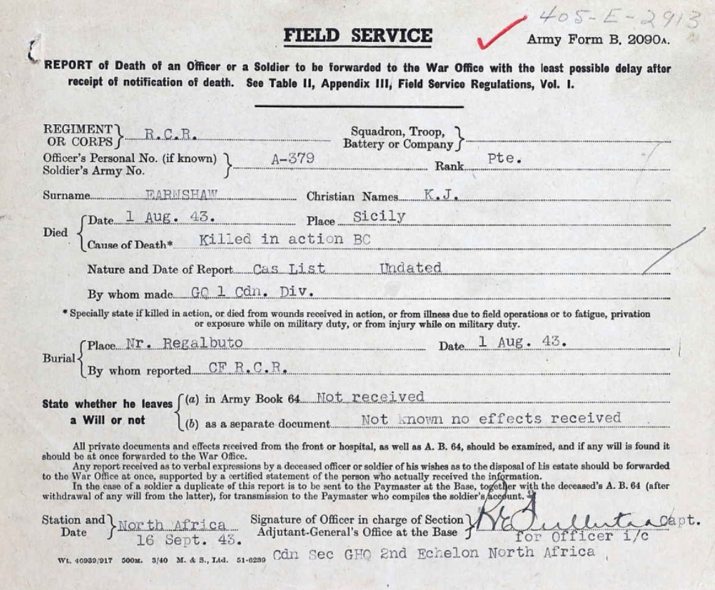 Galerie numérique de Soldat Kenneth John Earnshaw