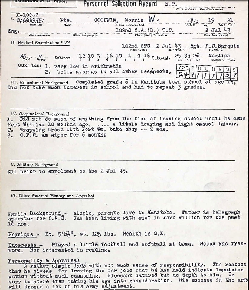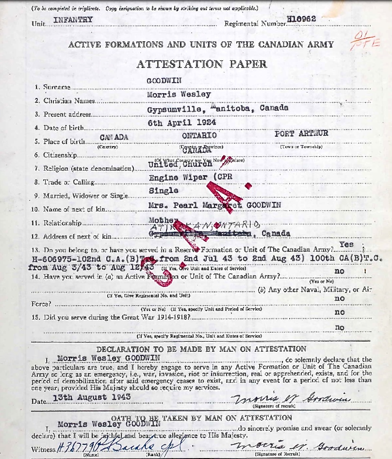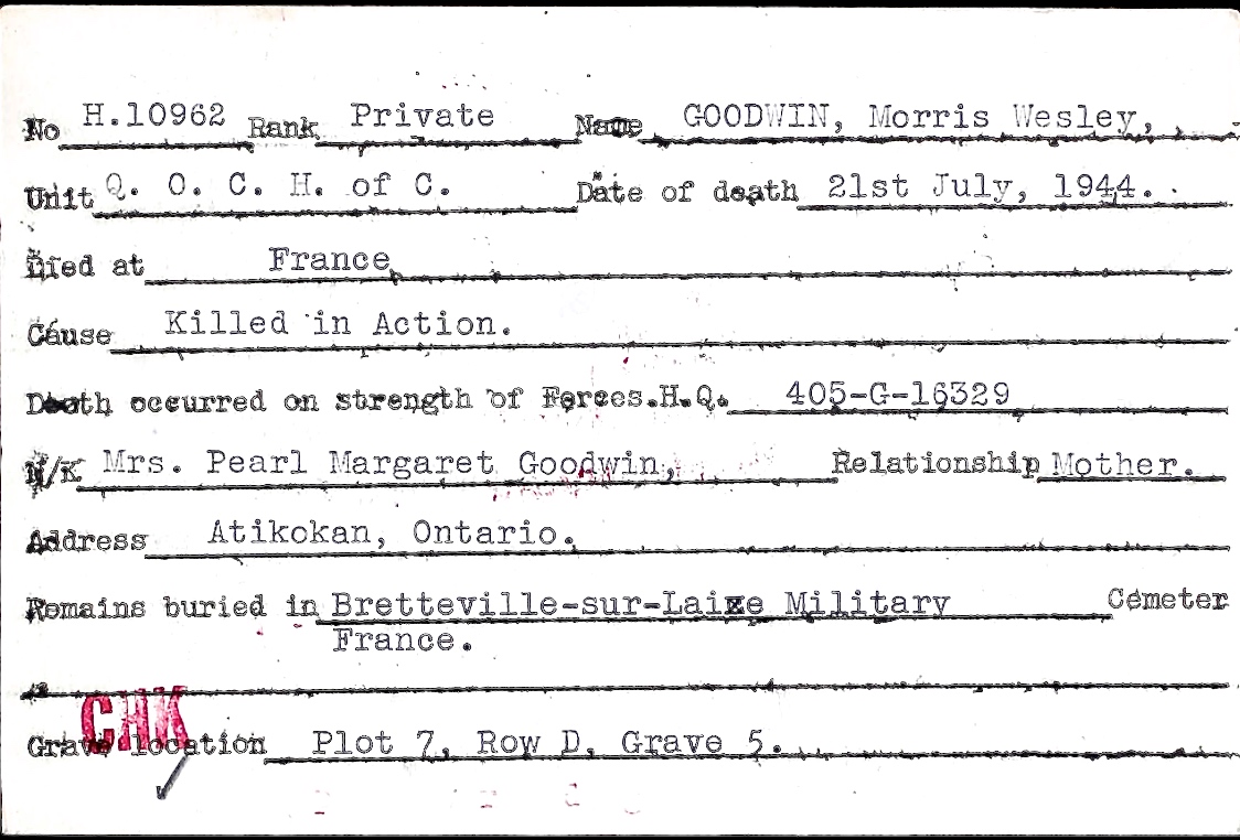 Fils de Clayton W. et Pearl Margaret Goodwin, de Atikokan, Ontario.