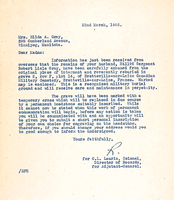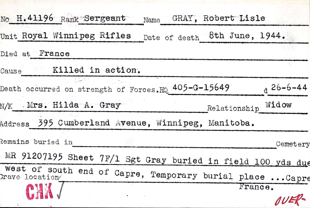 Fils de Robert et Pearl Gray. Époux Hilma Gray de Winnipeg, Manitoba.