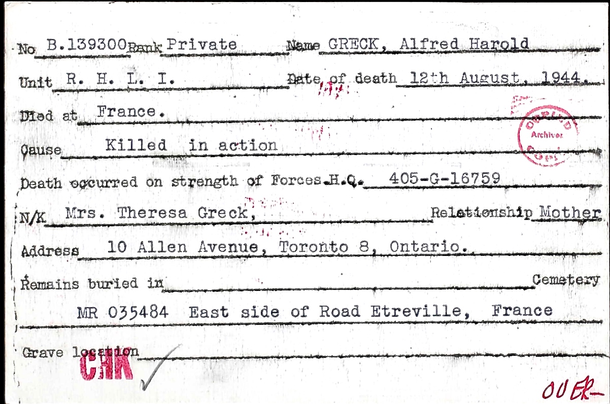 Fils de John et Theresa Greck de Toronto, Ontario.