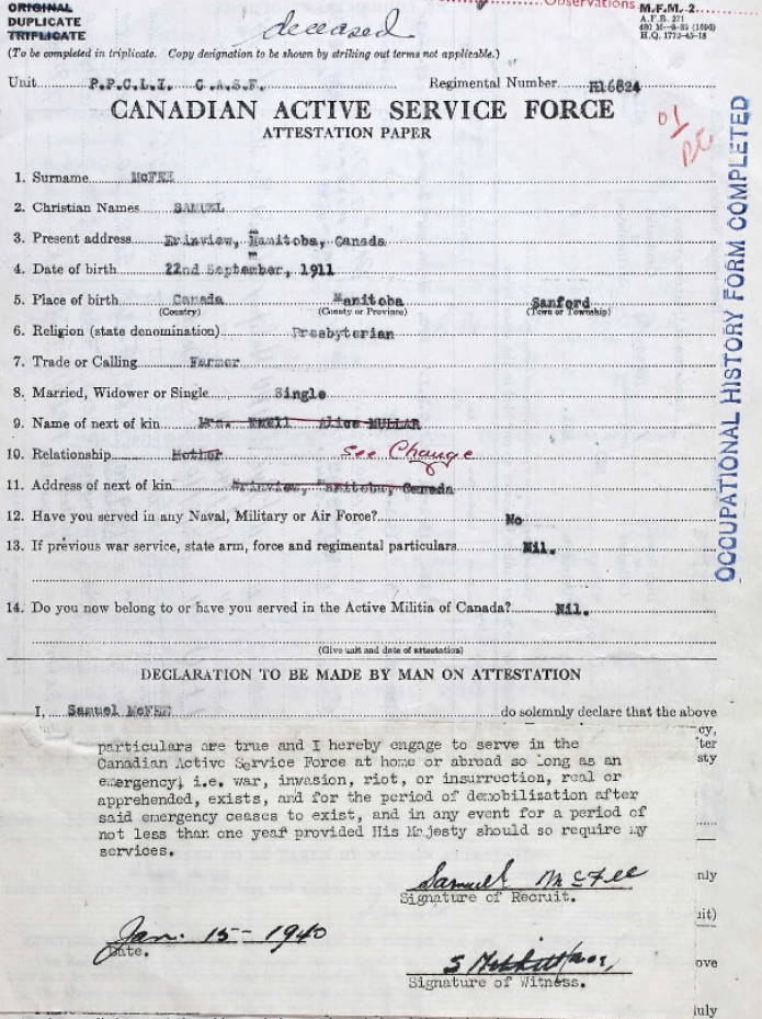 Page 190 du Livre du Souvenir de la Seconde Guerre mondiale.
